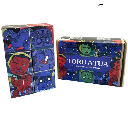 Toru Atua is a mini set of Pū Rākau blocks featuring three Māori Atua: Tūmatauenga, Tāwhirimātea, and Tangaroa.