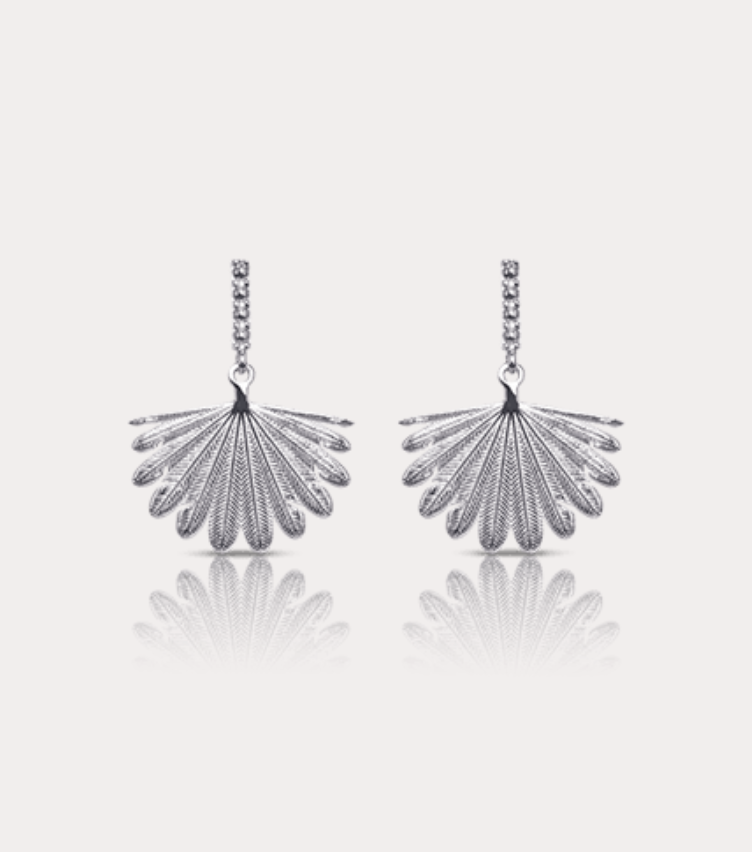 A little sister to the original Fan Tail design and bigger sibling to the delicate mini Fan Tail, the Midi earrings suspend the Fan Tail charm from an ornate post, embellished with soft metal beading.